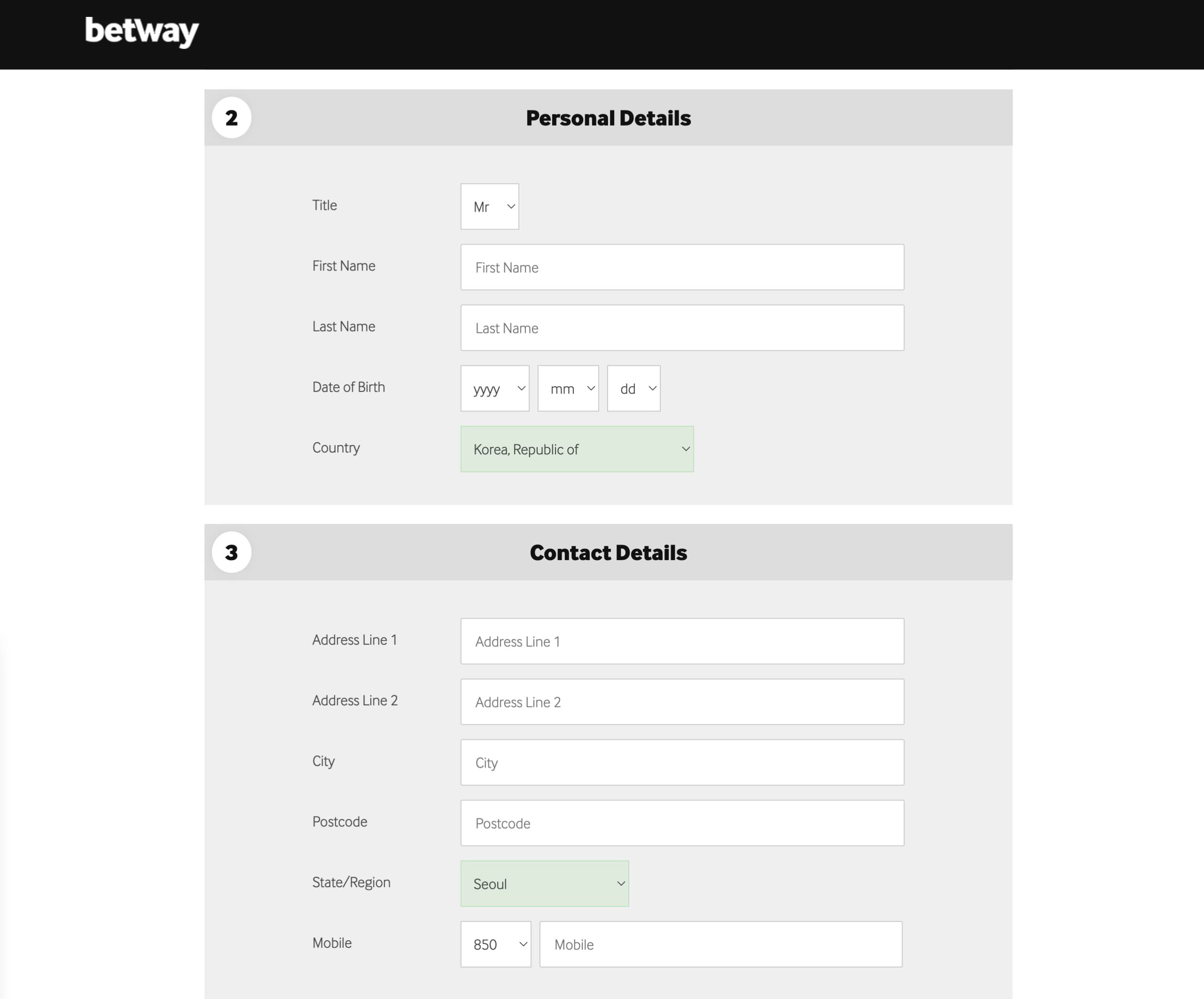 - Betway 방문 및 가입: Betway 웹사이트 또는 모바일 앱에 접속하여 ‘지금 가입’ 버튼을 클릭하고, 개인 정보를 입력하여 계정을 생성합니다.