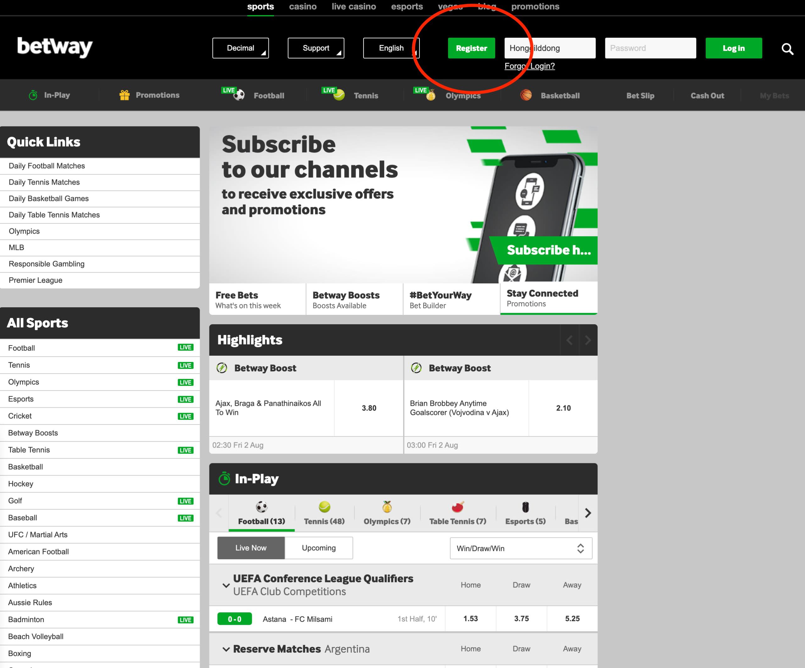 Betway 환영 보너스 신청 방법